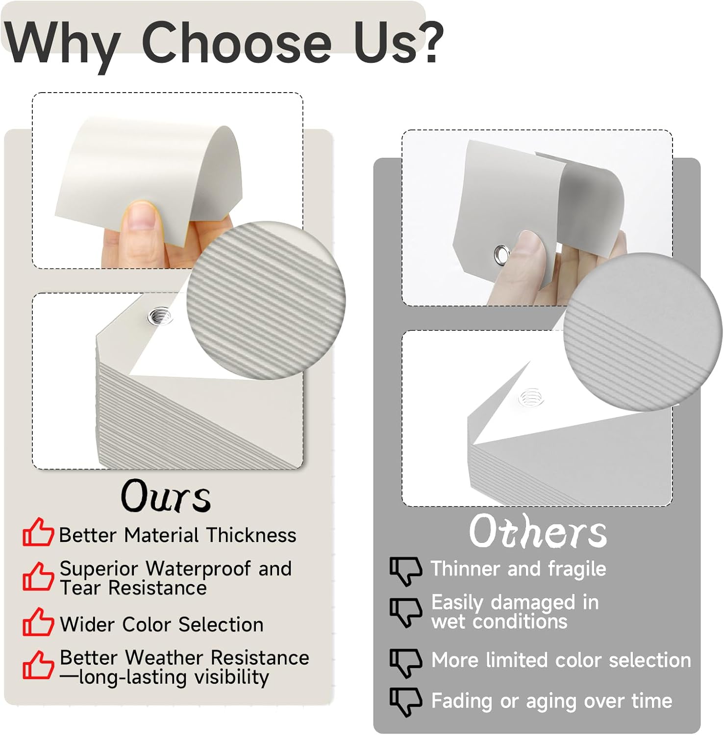- Widely Applied: Hang tags with reinforcement patches are suitable for numerous purposes, such as color coding projects, inventory control, price tags, key label, labeling storage parts labels. Their versatility makes them an essential tool for businesses, schools, home, office and households