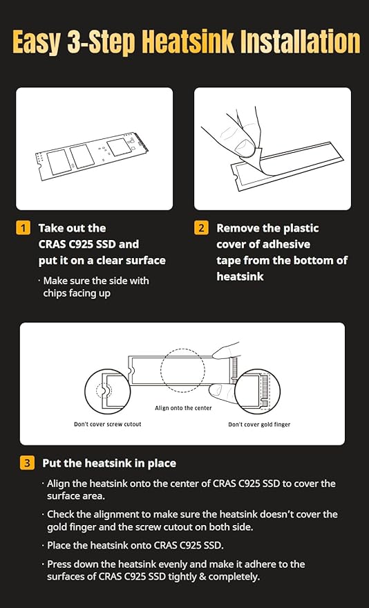 - Special Feature : Advanced 3D NAND Flash: The 3D NAND flash architecture is the latest advancement in NAND technology significantly boosts storage capacity through flash memory cells stacking vertically to enhance Total Bytes Written (TBW), and improves performance., Astonishing Speed for Utmost Performance: Harness the speed of PCIe Gen4 NVMe with read/write capabilities of up to 7400/6500 MB/s for significant productivity boost. Enhanced response and performance for gamers to creative professionals.(Results measured on the 2TB model. Performance may vary based on different hardware test platforms, software, operating systems, etc.), Compatible with PlayStation5: Expand your game collection with additional storage space, and improve your gaming experience with your drive operating at peak performance. The installation and setup process for your PlayStation5 console is hassle-free., Streamlined Aluminum Heatsink Design: The CRAS C925 features an optional slim aluminum heatsink for improved thermal management. Choose to display the high-quality components of the C925 for a technical aesthetic, or opt for a refined appearance with the elegantly crafted aluminum heatsink., Ultra-thin SSD with Single-sided Architecture: Featuring an ultra-thin, single-sided NAND chip design, the CRAS C925 is compatible with a wider range of form factors, making it particularly suitable for slim and compact devices, laptops or consoles. Advanced 3D NAND Flash: The 3D NAND flash architecture is the latest advancement in NAND technology significantly boosts storage capacity through flash memory cells stacking vertically to enhance Total Bytes Writte… See more