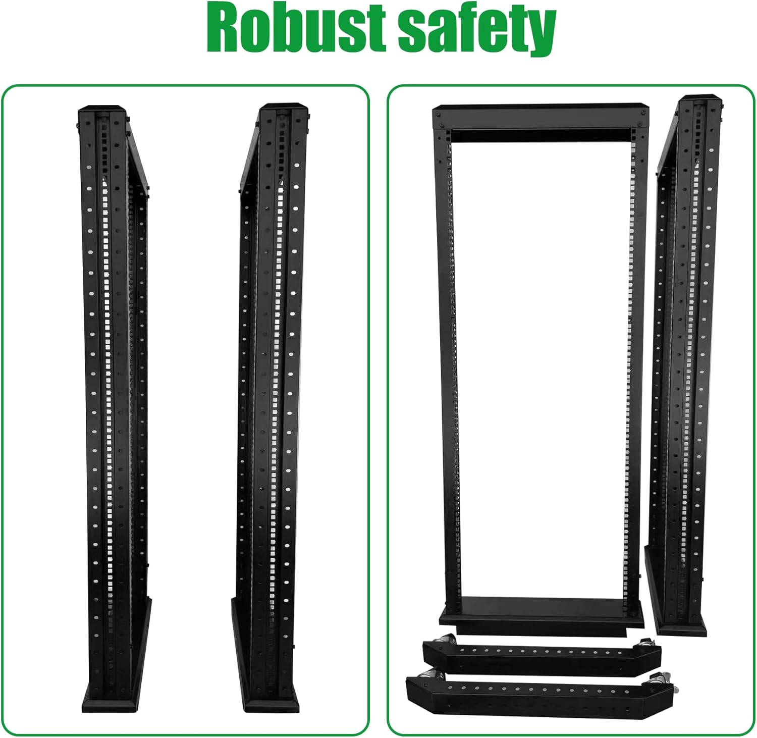 - Specifications:GLOBALRACK 4-post open frame server rack ,Network rack that complies with all 19-inch standard equipment.Installation depth 15.75-13.75in,Equipped with brake wheels,Compatible with various servers, switches, data, AV, other IT equipment.