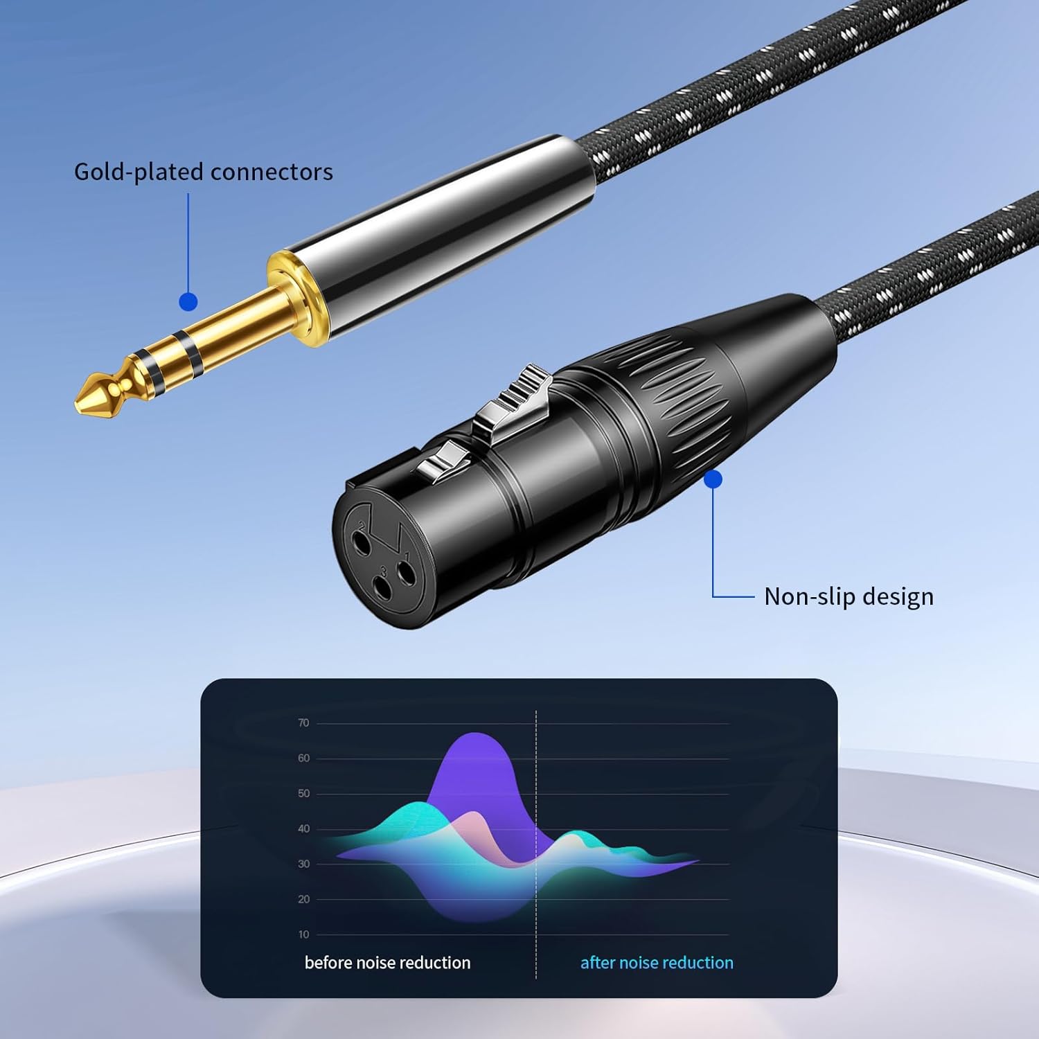 - Product Features:The XLR female to 1/4 cable features a multi-layer shielded construction that eliminates signal loss and static noise, minimizes signal interference, and ensures stable transmission.