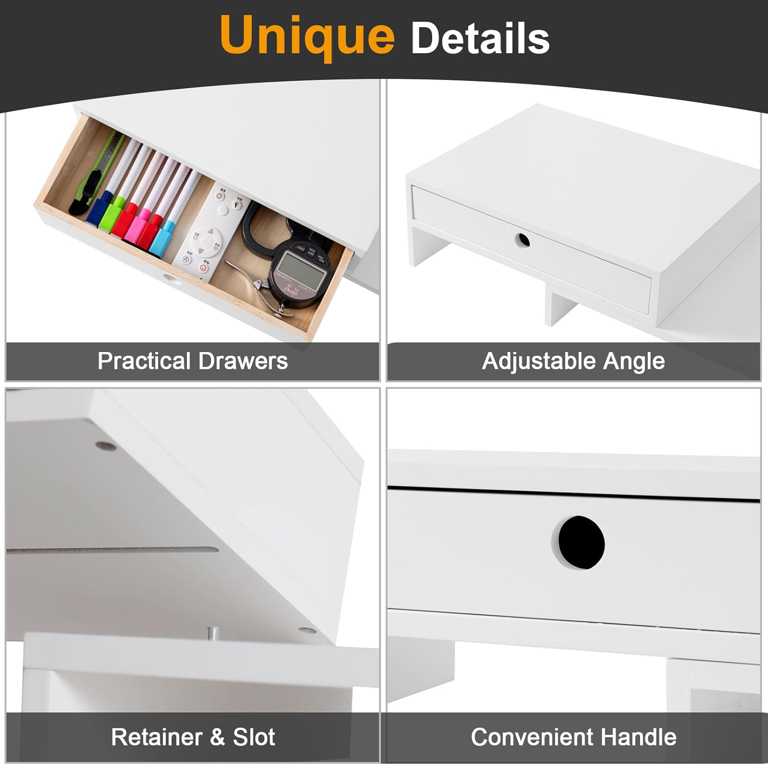 - Useful & Orderly: The monitor stand can hold 2 monitors! It may be an ideal choice when you need multiple computers to work together. With 3 storage spaces under the monitor stand, plus 2 drawers, you can organize some office supplies and keep your desk in order.