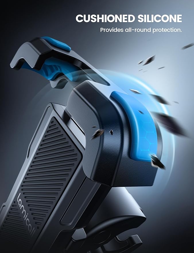 Lamicall Motorcycle Bike Phone Mount - Upgrade Quick Install Handlebar Holder Clip for Bicycle Scooter, Cell Phone Clamp for iPhone 15 14 13 Pro Max, Galaxy S24 and More 4.7-6.8" Phone, Blue