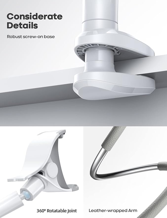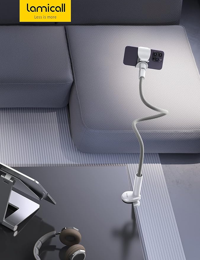 - 3rd Generation Gooseneck Holder: Lamicall’s new gooseneck phone holder uses a 98cm long artificial leather-wrapped arm, a universal ball joint design and a reinforced base, which gives it a better texture, good stability and flexibility. A perfect tool that can free your hands to watch movies, make Facetime calls or record videos, etc.