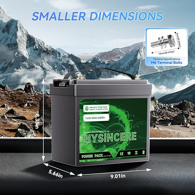 - WHAT YOU WILL GET: Package Include:1 x Hysincere 12v 50ah lithium battery, 2 x Terminal Screws, 1 x Manual. TIPS: All the Battery Tested and functioning well before shipped, please make sure your parcel packed well when received! And if you have any problem with Hysincere Battery, please feel free to contact us, we will be with you within 24 hours and provide a satisfation!