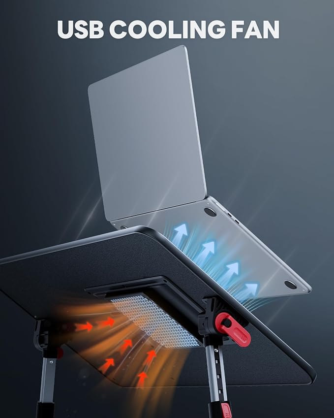 - Built-In Cooling Fan: Laptop bed table is equipped with USB cooling fan. During use, connect the USB cable to the laptop so that you can use the laptop for a long time without causing overheating.