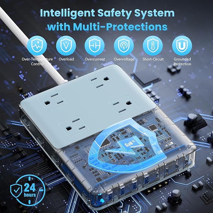 - 【Trustworthy Multi Plug Outlet Extender with 3 Years Warranty】Package includes USB C Fast Charging Station with 5ft undetachable extension cord (12-in-1, 200W), user manual, friendly customer service.