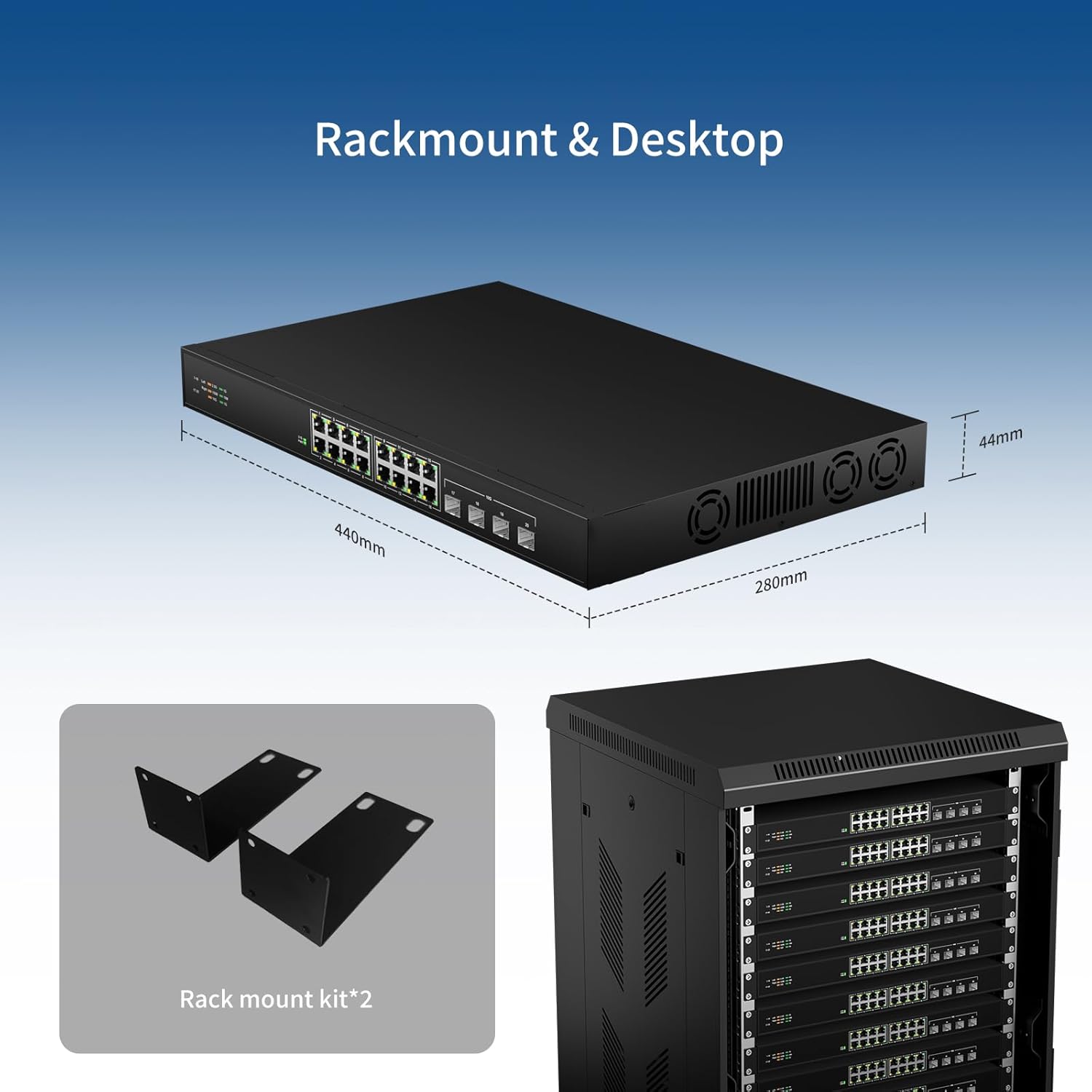 - 【Multiple Installations】It supports desktop placement and rack mount, flexible installation options is suitable for different use environments.