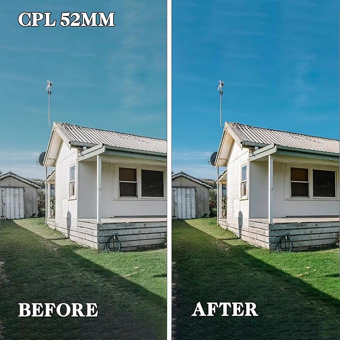 - CPL Polarizer: Use the CPL polarizer filter to reduce glare and reflections on non-metallic surfaces, enhance color saturation and contrast