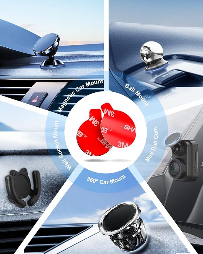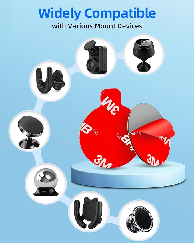 - Perfect Size for Magnetic Car Holder: Our 25mm (1 inch) 3m double sided sticky pad is suitable for various magnetic dashboard phone mount, universal magnet ball mount, micro finger ring holder, plastic wall socket grip, mini 2 &mini 3 dash cam camera base, compass car mount. Multipurpose strength heat resistant foam adhesive backing can seamlessly attach hands free or heavy duty car mounts to your car dash or windshield without cutting (Not fit for pop socket users!)