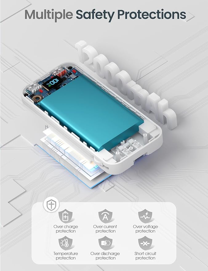 - [Super Fast Charging Power Bank]Designed for multiple devices, this fast charging power bank with USB C port, USB C cable and one of USB A.This USB A is specially designed for fast charging Android and other smart devices.The elegant LED digital screen displays the battery power even accurately to 1%.