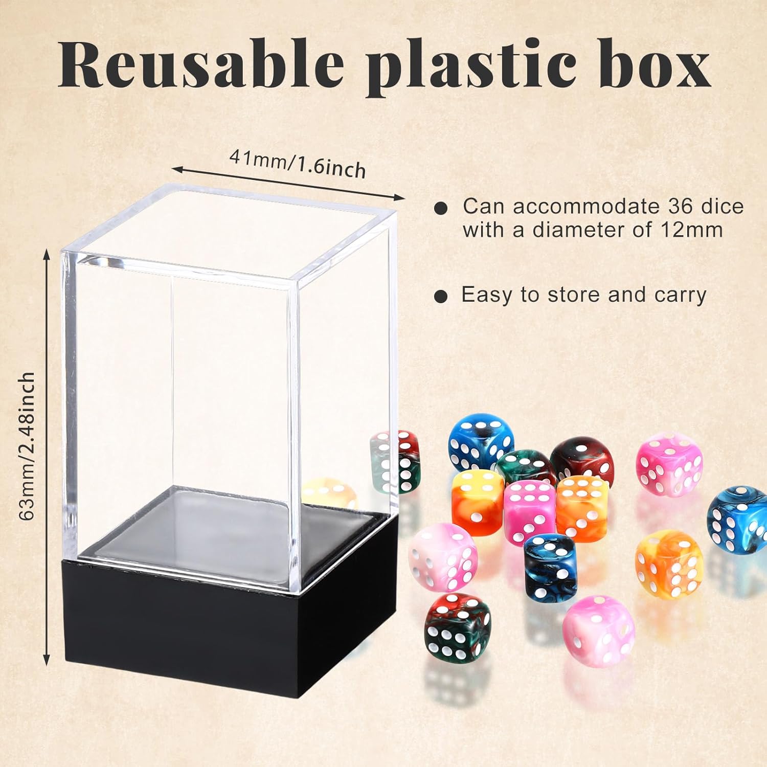 • Convenient Portability: our dice set comes with a transparent storage box, allowing you to keep your dice organized and secure; No more worries about losing or misplacing your dice; The compact size of the box makes it easy to carry in your pockets, handbags, backpacks, or game bags, ensuring that you can enjoy your favorite games anytime, anywhere