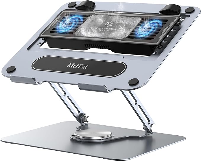 Laptop Cooling Stand with Detachable Thermoelectric Cooler, Adjustable Height & Angle, 360 Rotation Base, Carbon Steel Framework, Ultra-Quiet & Super Sturdy for up to 15.6” Laptop (Grey)