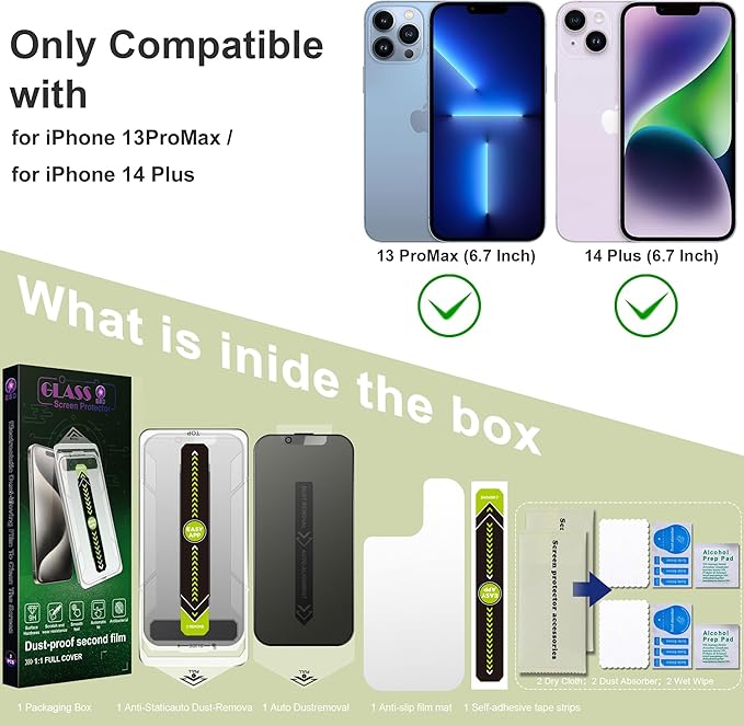 - Bubble-Free,Case-Friendly Fit: Designed for perfect fit and full case compatibility,this iPhone 13 Pro Max/14 Plus screen protector offers sensitive touch response and stays bubble-free.Enjoy long-lasting,seamless protection that works perfectly with your favorite phone case