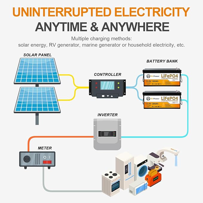 - 【Super safe to use】12V 300Ah LiFepo4 battery will not burn when overcharged, over-discharged, over-current or short circuit, and can withstand high temperatures without decomposition. Built-in 200A BMS can handle cell balancing, low & high voltage cutoff, short circuit protection and temperature protection. Without memory effect, no matter what state the battery is, it can be used as soon as it is charged.
