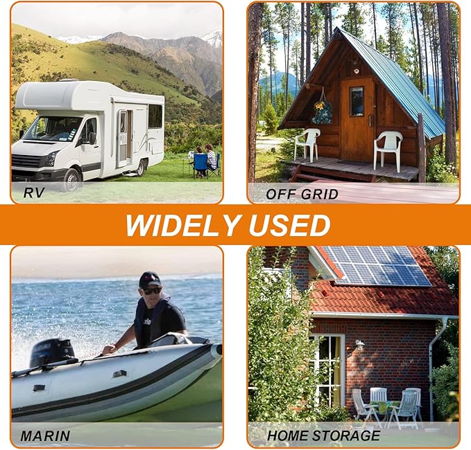 - 【Automotive Grade Battery】12 volt LiFePO4 battery use Automotive Grade LiFePO4 Cells with higher energy density, more stable performance and greater power. Highest-level safety based on UL Testing Certificate for the cell inside. Perfect for off-grid solar system and outdoors application such as home backup power, RV, camping, sail boat, etc.