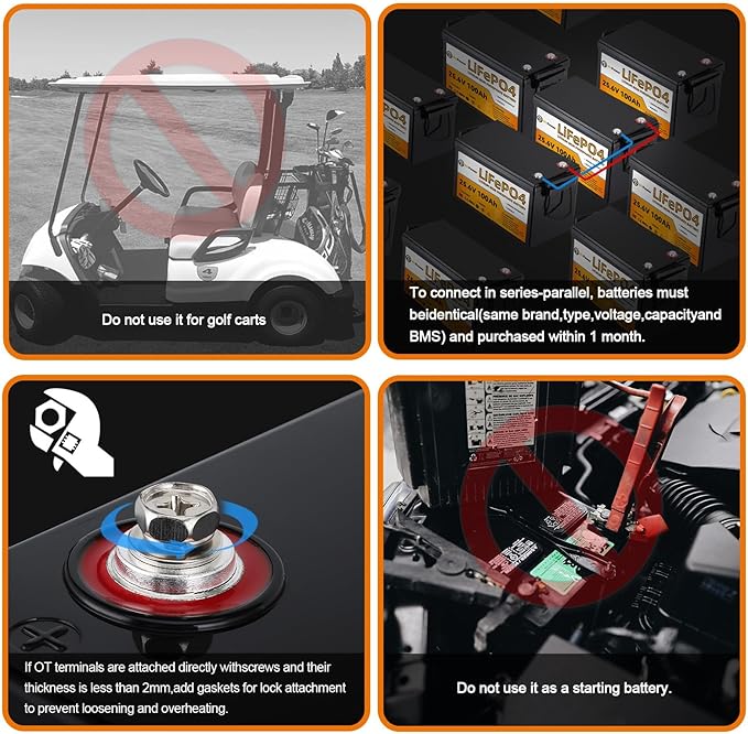 - 【Note】 Not applicable to car starting and riding mower(This battery is a storage power supply not to be used as a starting power supply).If there is any problem please contact us without hesitation.