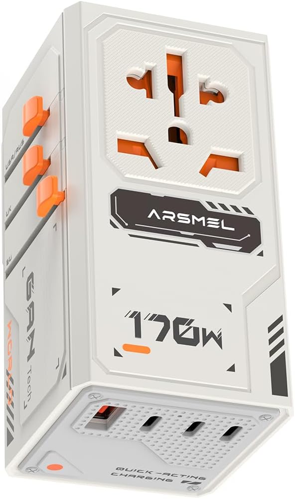 - 【170W GaN Fast Charging – Power 5 Devices Simultaneously】With advanced GaN technology, VisaPro delivers 170W total output through 3 USB-C and 1 USB-A ports, charging your devices quickly and efficiently. Ideal for laptops, smartphones, tablets, and more, it offers universal plug compatibility, making it the perfect travel companion for digital nomads, business travelers and international travel enthusiasts!