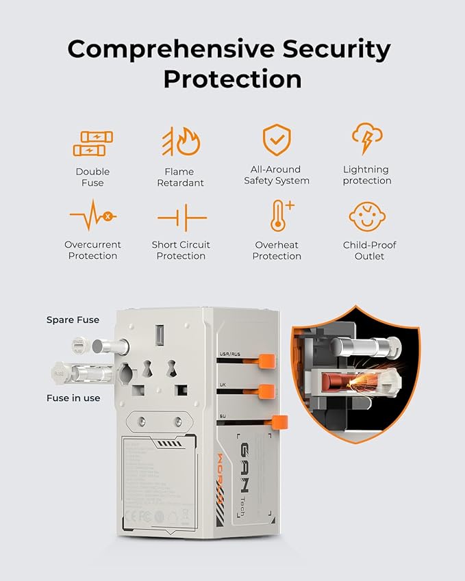- 【Universal Travel Adapter – Works in 200+ Countries】Designed for worldwide use, VisaPro features 4 plug types (Type C/G/I/A), making it compatible with 200+ countries, including most of Europe (France, Germany, Italy, Spain, etc.), the UK, Ireland, Australia, New Zealand, China, the USA, Japan, and Canada—a perfect travel essential for global explorers.