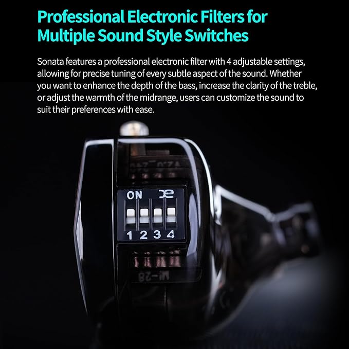 - 4-Level Switch for Tuning: KZ Sonata has 4 switches that can customize sound preference. Whether in terms of tuning range, adjustment precision, or amplitude modulation, they surpass traditional damping tuning solutions by far. The bass doesn't bleed into the mids nor does it sound muddy/boomy. Well-extended treble that's detailed enough and sparkling. It doesn't sound sibilant nor too fatiguing/sharp