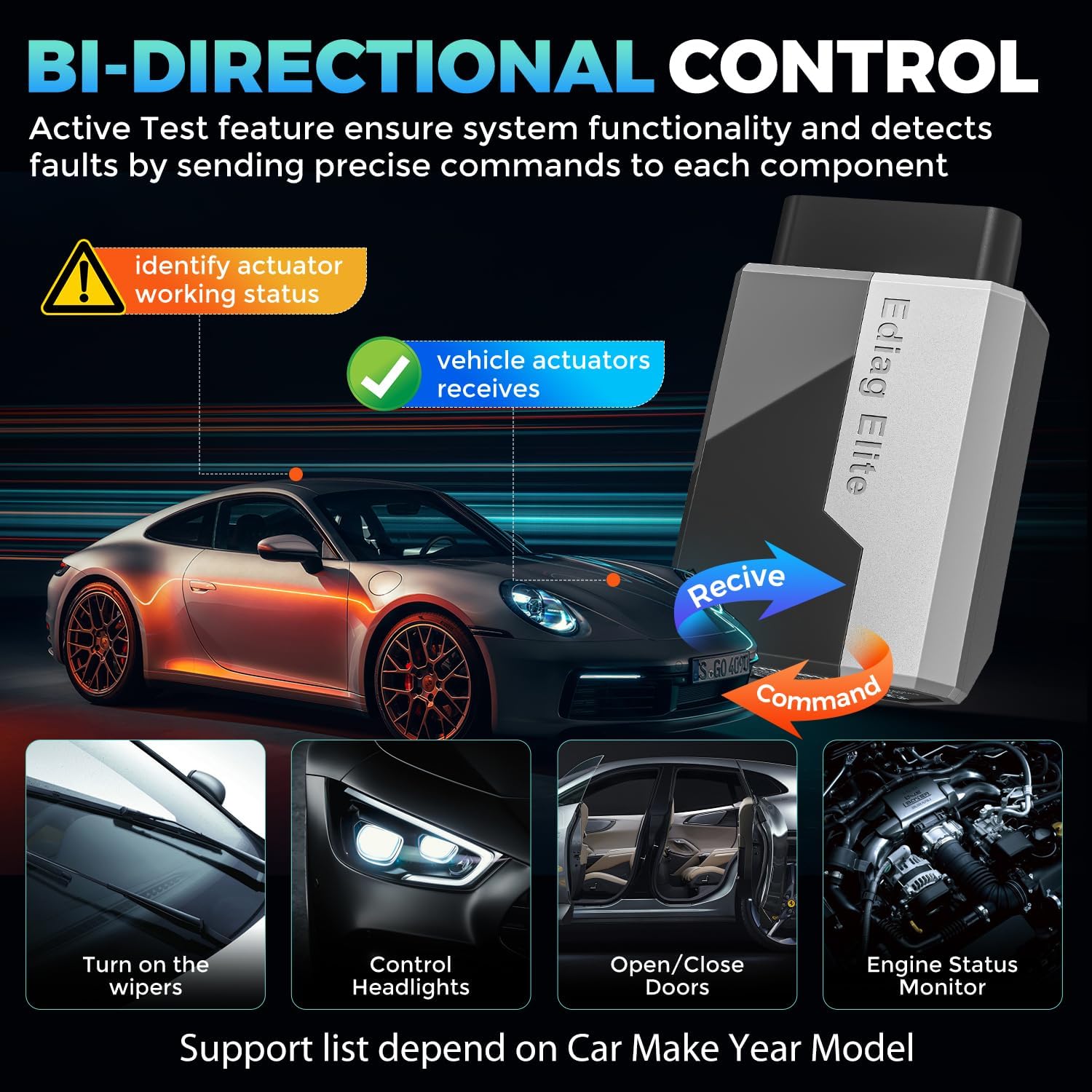 - Perfect for Monitoring The Health of Your Vehicle: Ediag Elite is designed to make vehicle maintenance simple and efficient. With intelligent AutoVIN quick recognition, it is easy to connect to your car without the need for manual input. Real-time data is visualized in a variety of formats, including graphs, numeric, meter displays and clear 4-in-1 data charts, allowing you to effortlessly monitor real-time performance. Data logging/reporting is available for playback and further analysis.