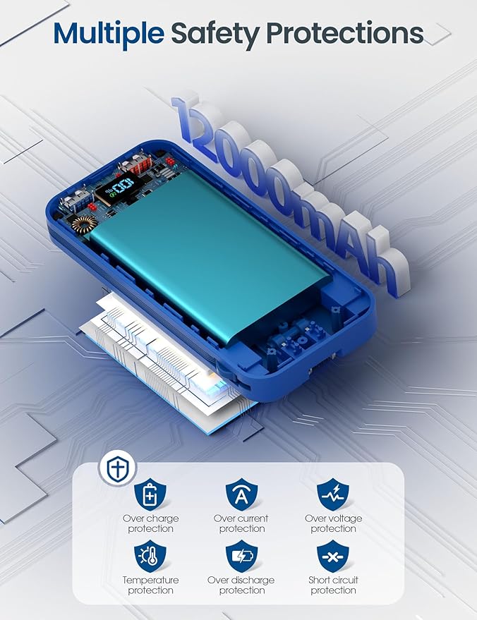- [Package Content] Portable charger 12000mAh*1,user manual*1,USB C cable*1, our 12-month support, and 7-day/24-h friendly customer service. If you have any problems, please contact us and we will solve them within 24 hrs.