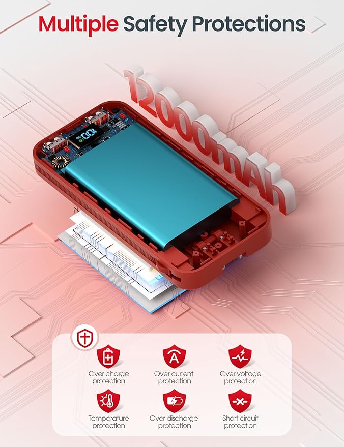 - [Package Content] Portable charger 12000mAh*1,user manual*1,USB C cable*1, our 12-month support, and 7-day/24-h friendly customer service. If you have any problems, please contact us and we will solve them within 24 hrs.