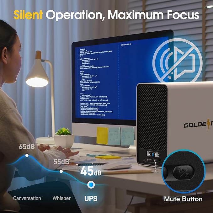 - [Intelligent LCD Display & Integrated Button]: This UPS offers real-time, detailed monitoring of battery and power status, ensuring optimal performance and reliability. It includes an automatic safety feature that halts charging and discharging if limits are exceeded, preventing potential damage. The mute function and LCD on/off controls are integrated into a single switch, conveniently located alongside the main power button, allowing you to easily silence the alarm and turn off the LCD display when needed