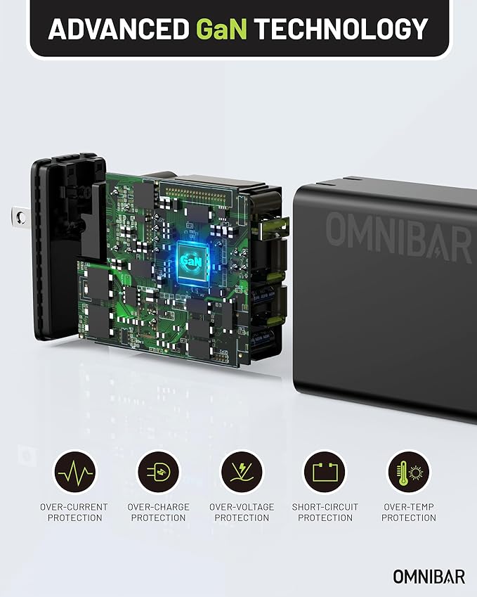 - Safe & Travel-Ready with GaN Tech:Built with next-gen GaN technology for better heat control, higher efficiency, and safer charging. Equipped with foldable prongs, flame-retardant casing, and multiple protection systems: over-voltage, over-current, overheating, and short-circuit safeguards.