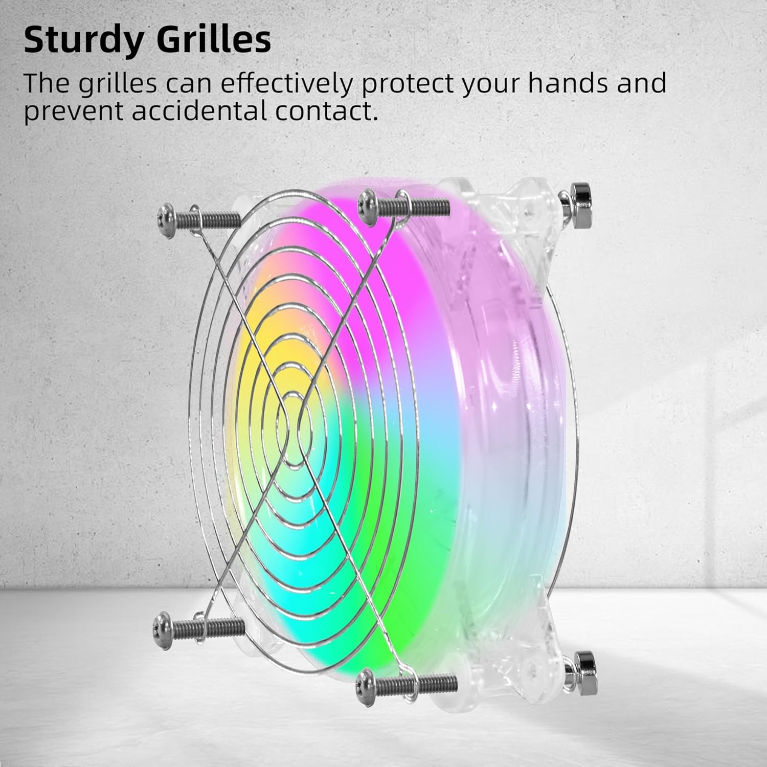 - 【Durable Grilles】 The 120mm case fan's sturdy silver grilles protect fingers and wires while maximizing airflow, ensuring safe and efficient cooling for gaming consoles, TVs, hard drive case and AV entertainments.