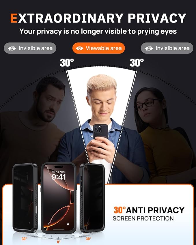 - 【 Privacy Screen Protector 】ONLY Designed specifically for the iPhone 16 Pro Max. NOT for iPhone 16 /16 Pro/16 Plus. Lanhiem Waterproof iPhone 16 Pro Max Case built-in Privacy screen protector to keep your screen invisible to others. Don't worry about someone else seeing you while chatting, mobile payment or private business.