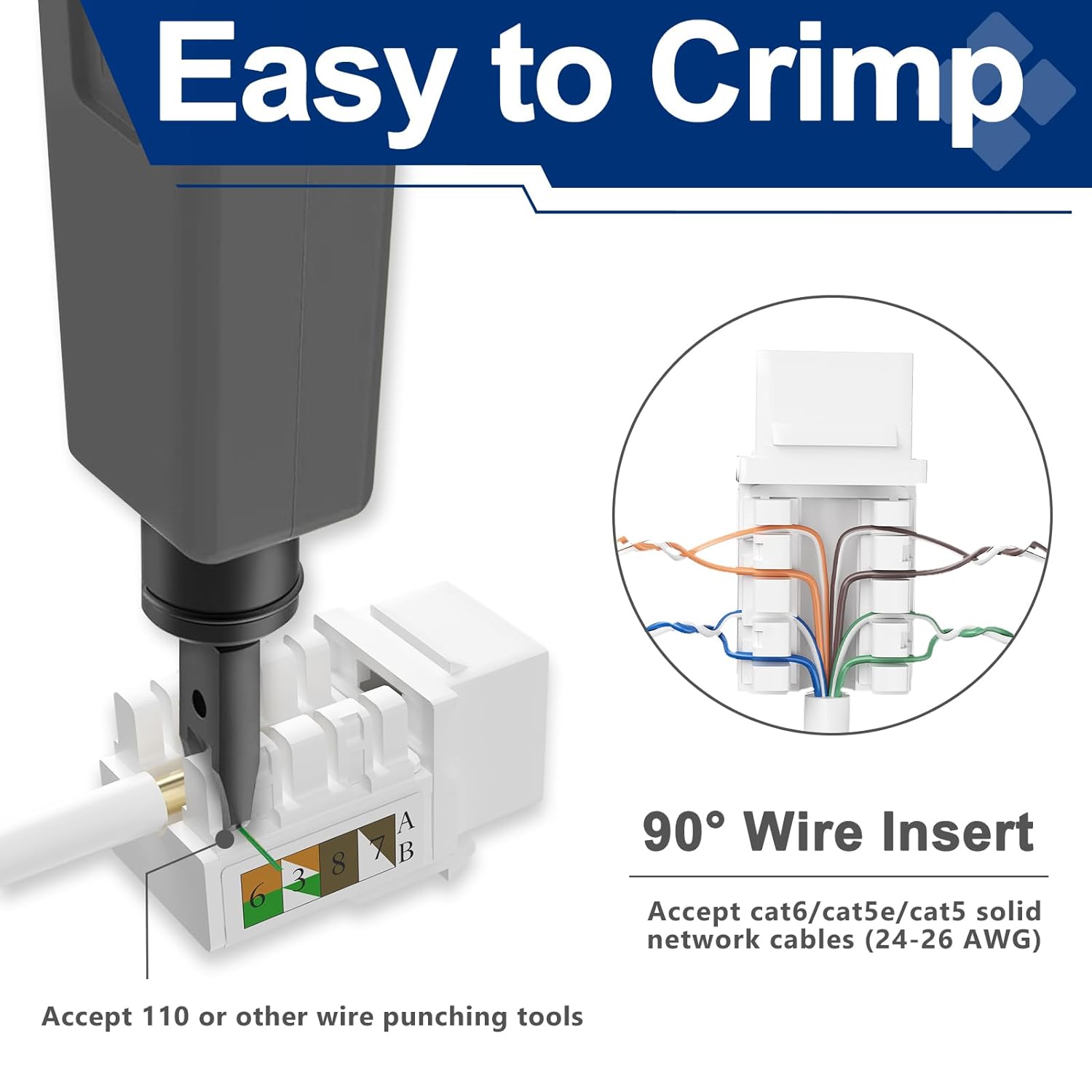 - 10G Transmission: Our Cat6 keystone jacks support 10G speeds for fast data transfer and reliable network performance; Backward compatible with 10/100 Ethernet; Meet ANSI/TIA/EIA 568-C.2 standards and support PoE