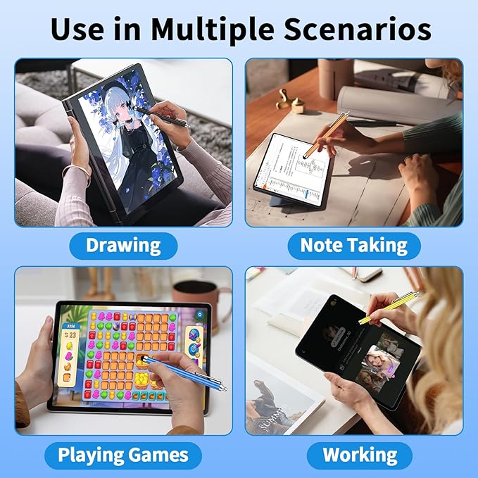 - Precision Touch: The stylus is a rubber pen tip, which can provide a more accurate touch experience than the finger. Say goodbye to your fingers to touch and inadequate operations, and enjoy a smoother and efficient touch experience. Whether in work, study, or entertainment, this stylus pen can easily cope with various scenarios and improve use efficiency.