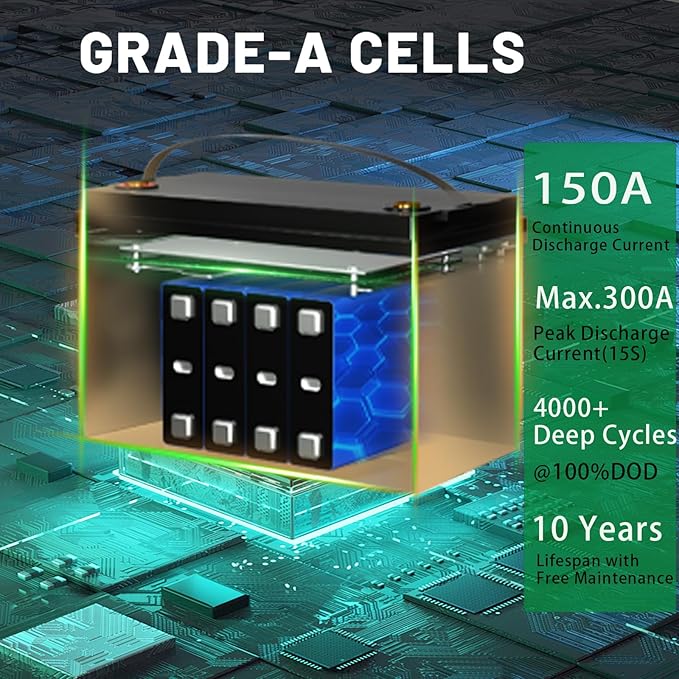 12V 170Ah LiFePO4 Battery, Built-in 150A BMS with Low-Temp Protection, Group 31 Deep Cycle Lithium Battery, Up to 15000 Cycles, Perfect for Trolling Motor, RV, Solar Power, Off-Grid, Marine