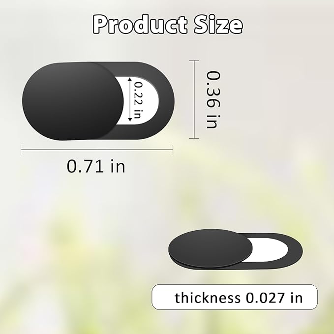 - Ultra-Thin and High Quality: Mini size Web camera cover slide is only 0.027 inches in thickness which will not interfere with the closing lid of your laptop. It also does not interfere with web use or indicator light. It is made of premium high-strength ABS plastic that could provide long-term reliable protection for your privacy. One set comes with 8 pieces of webcam covers (8pcs in 0.71*0.36*0.027 inch), which meet your everyday need.