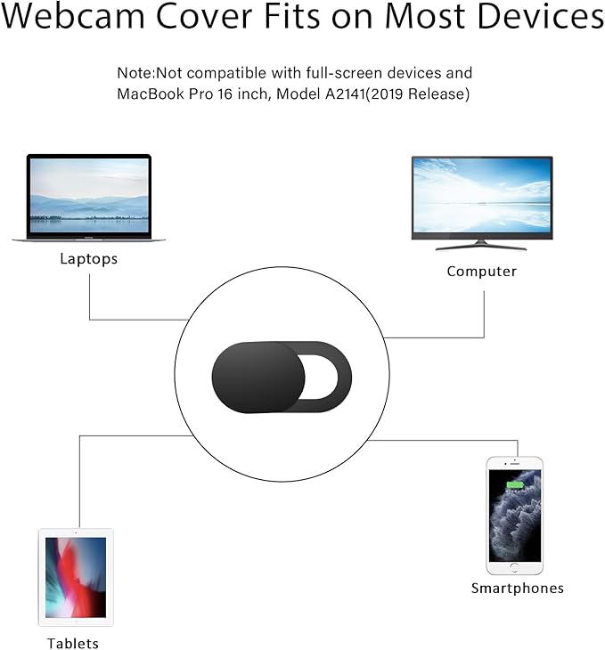 - Compatible with Most Devices: Webcam cover perfectly fits most models of computers, tablets, and cell phones. Such as MacBook Pro, MacBook Air, Mac, laptops, surfaces Pro, iPad Pro, Android tablet, PC, all-in-one desktop, cell phone, and more smartphones. Please note that the lens cover needs to be used on a flat surface and not suitable for full-screen devices.