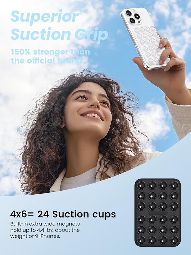 - Powerful Suction Grip - Equipped with 24 suction cups, each 12mm in diameter, this mount offers 40% more surface area for a reliable hold. The hard PC board base provides stronger adhesion compared to soft silicone mounts, ensuring a secure grip with just a simple press.