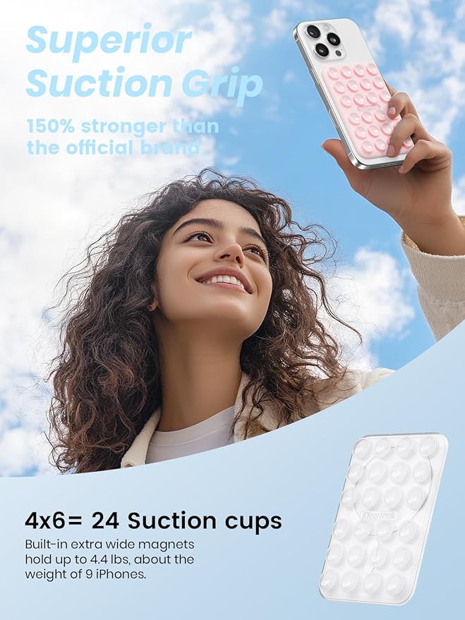 Klearlook 2Pack Magnetic Suction Phone Mount for MagSafe Case, Sticky Phone Grip Holder for iPhone, Removable Hands-Free Selfie/Video for TikTok Influencers, Women Girl Gift, Light Pink & Transparent