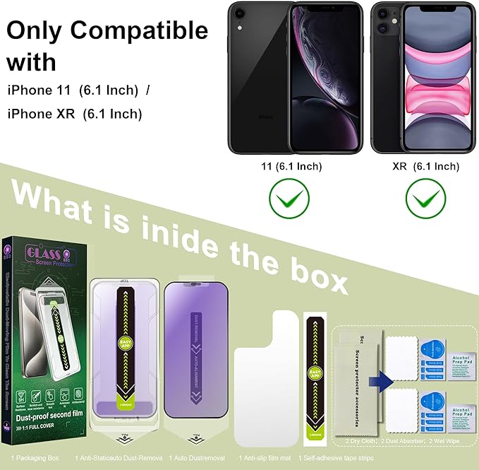 - Bubble-Free,Case-Friendly Fit: Designed for perfect fit and full case compatibility,this iPhone 11/XR screen protector offers sensitive touch response and stays bubble-free.Enjoy long-lasting,seamless protection that works perfectly with your favorite phone case