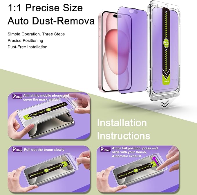 - Auto Dust Removal & Easy Installation: The SY SHANGYAN Anti Blue Light Matte Screen Protector for iPhone 14 Pro/15/16 features advanced auto dust removal and self-aligning technology for a flawless,bubble-free install every time.Just place the frame,pull the tab,and press to push out any air bubbles.Installation is quick,easy,and hassle-free.For best results,watch our step-by-step installation video before applying