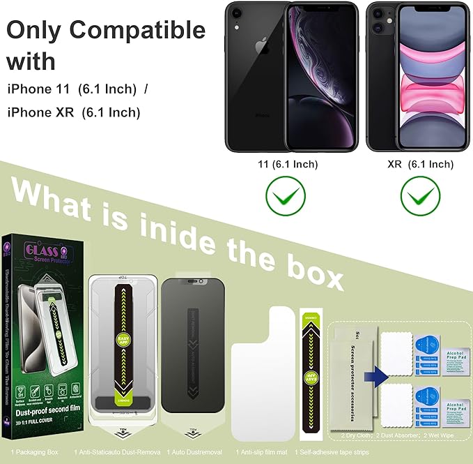 - Bubble-Free,Case-Friendly Fit: Designed for perfect fit and full case compatibility,this iPhone 11/XR screen protector offers sensitive touch response and stays bubble-free.Enjoy long-lasting,seamless protection that works perfectly with your favorite phone case