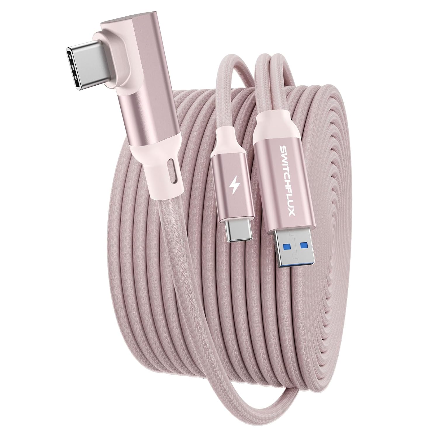16FT VR Charging Link Cable | USB 3.0 High-Speed Data & Charge for Meta Quest 3S/3/2/Pro, Pico 4 and PC/SteamVR USB-C Charger Cord for VR Headset - Pink