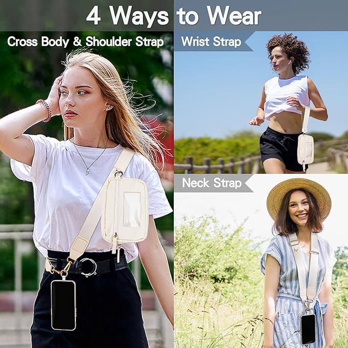 - 【Phone Strap Set】includes 1x 2-in-1 clip and go phone strap (adjustable length: 100-140cm/39-55in; a 10.2in wrist strap can be removed), 1x large zipper pouch (8*5*1in), 1x woven wrist strap (1.5*8.5in), 1x pad. The crossbody lanyard can be adjusted to suit different needs and occasions. The wrist strap is thickened and won't hurt wrist.