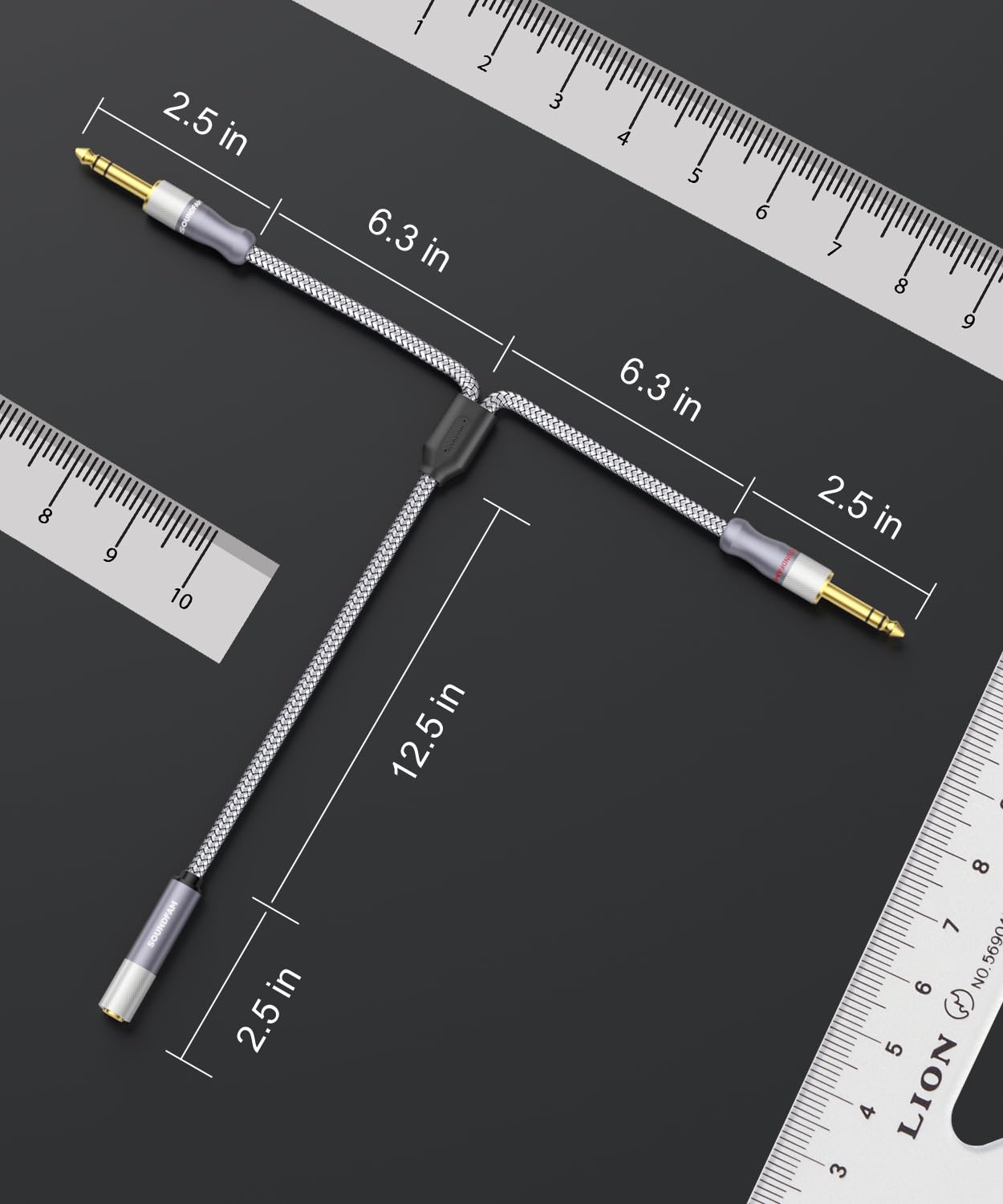 - 【Stereo-to-Mono Conversion】This 6.35mm Y splitter cable efficiently splits a stereo (TRS) signal into two mono (TS) signals or combines two mono signals into a single stereo output. Perfect for connecting mixers, amplifiers, guitars, and Hi-Fi systems while maintaining clear, high-fidelity audio.