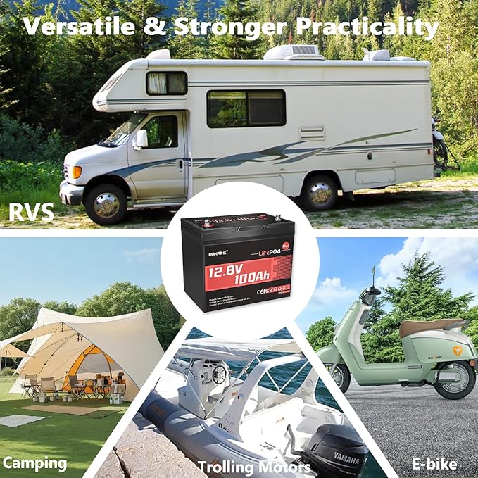 - Expandable & Durable Design:This lifepo4 battery 12v 100ah mini supports parallel and series connections up to 4S4P, allowing for a maximum capacity of 20.48kWh. it's perfect for outdoor, marine, and off-grid use, ensuring long-lasting durability in challenging conditions.