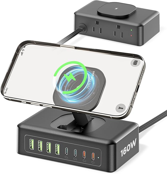 - Special Feature : 8USB, 2AC Outlets, 160W Fast Charging Station, Foldable magnetic Charger, 5FT Flat Extension Cord
