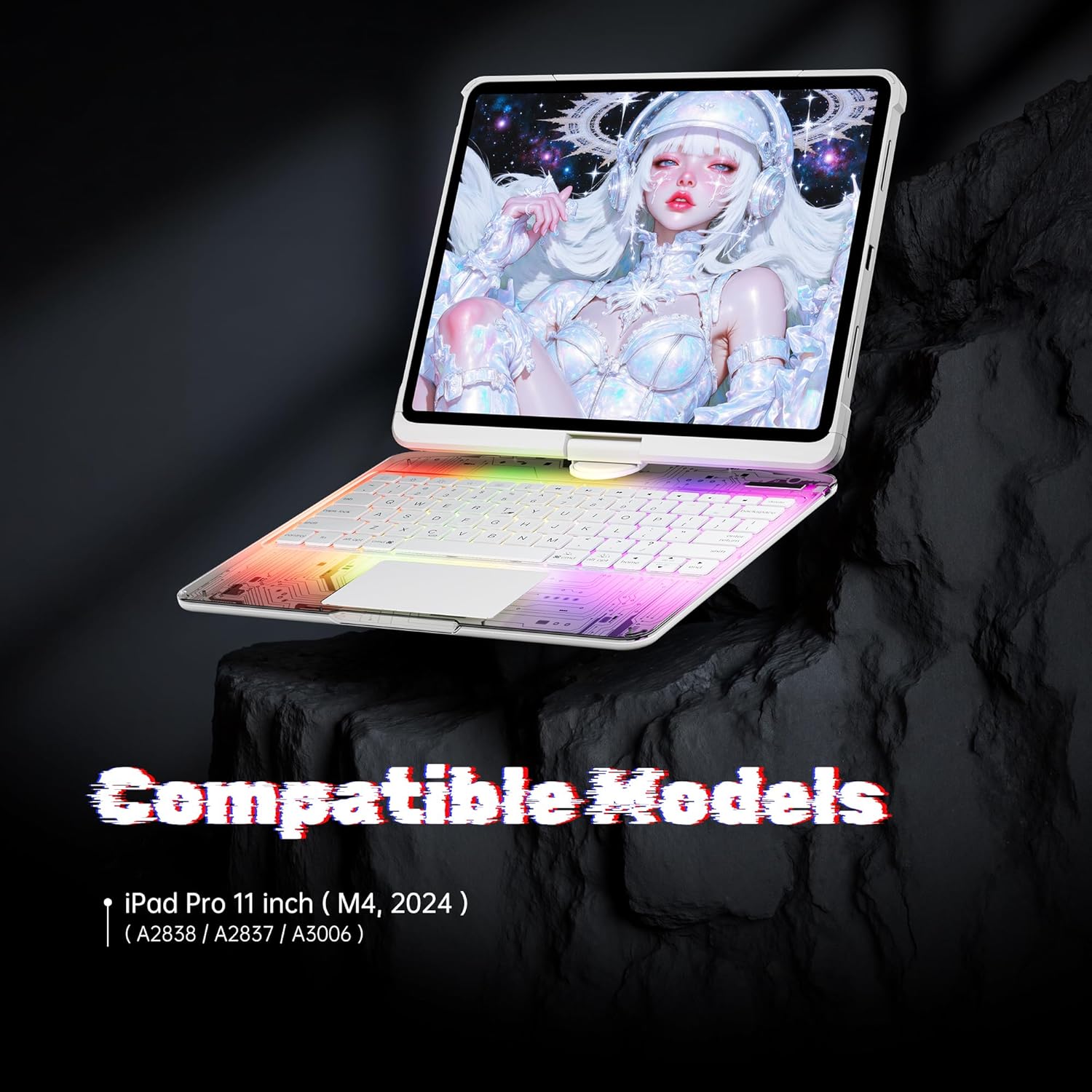 KITONE Transparent Case with Wireless Keyboard only for 2024 iPad Pro 11-in.(M4), 7 Colors Backlight, Trackpad, 360°Rotating Stand for iPad Pro 11(5th Gen), Tech Style