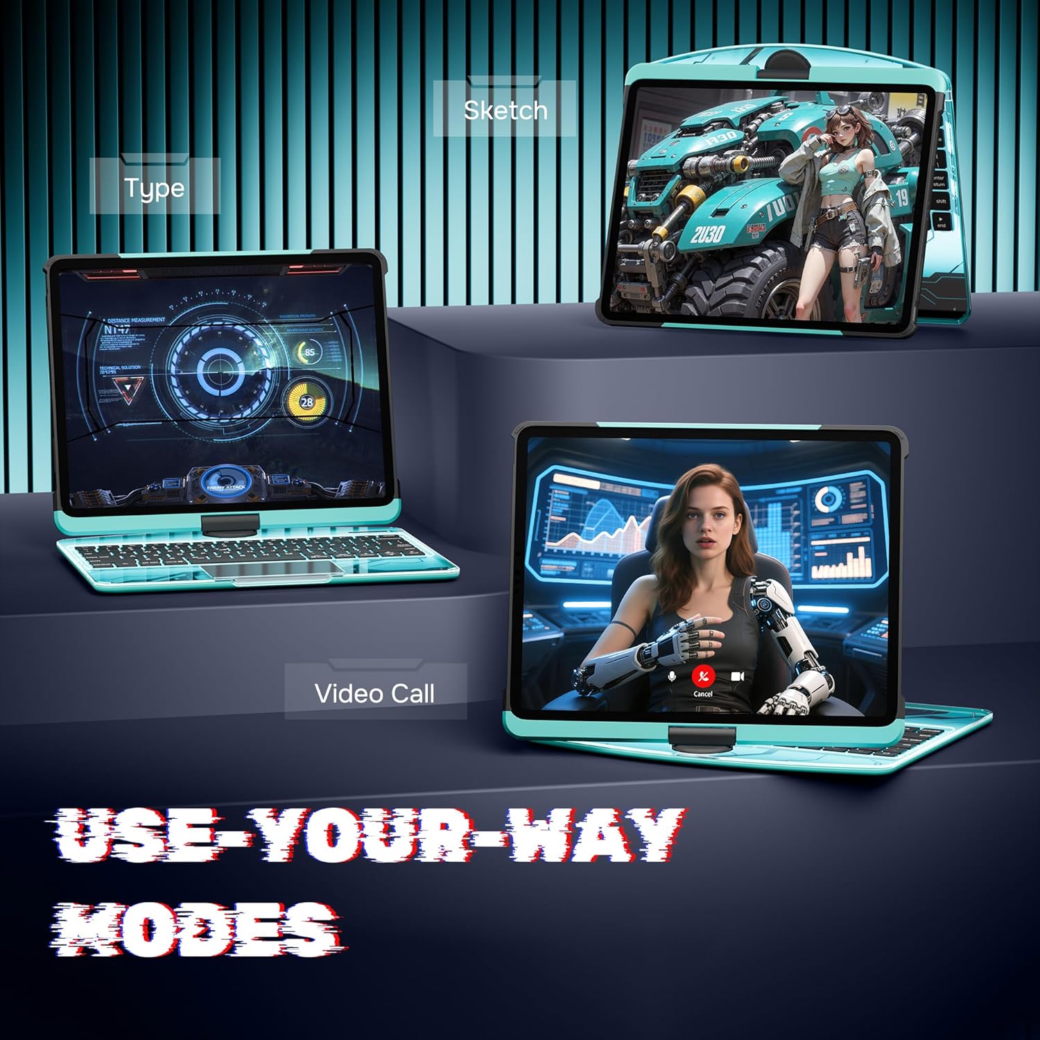 - 360° Rotating Stand & Multiple Viewing Angles: Experience complete flexibility with the 360° swivel base, featuring five adjustable angles. Whether you're typing, drawing, or watching videos, easily adjust your iPad for optimal comfort and efficiency in any position.