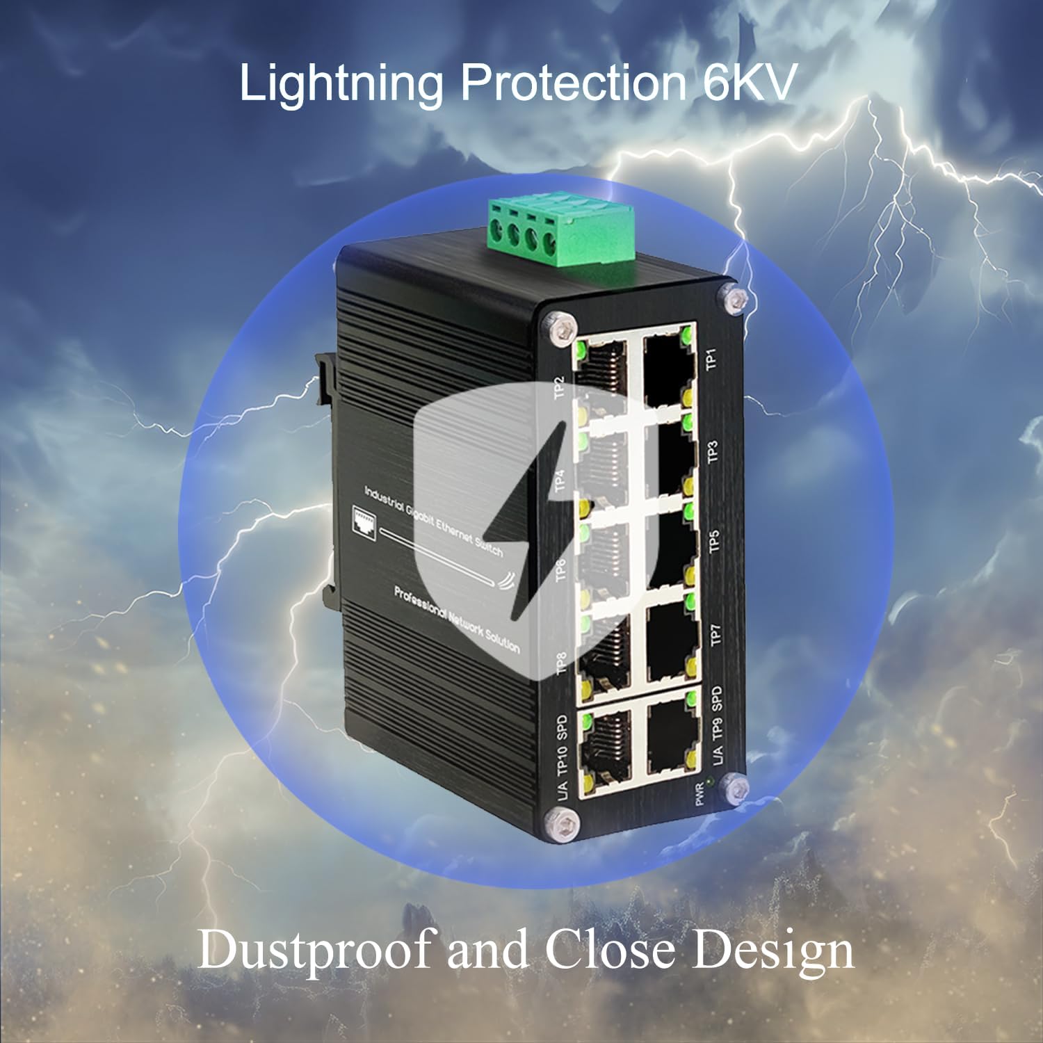 10-Port Gigabit Ethernet Switch,Industrial Design with Rugged Metal Case, Plug and Play, Full-Duplex Fast Ethernet Connectivity, Unmanaged Gigabit Switch, Compact Mini Size, Din-Rail or Wall Mount