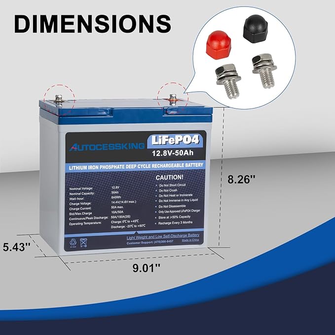 - β LIGHTWEIGHT AND VERSATIL - Item Dimensions: 9.01"L x 5.43"W x 8.26"H. Our 12v battery engineered with Lithium Iron Phosphate (LiFePO4) technology, offering 1/3 the weight, 2x power and 8x longer lifespan compare to a lead acid battery. It is a perfect upgrade for any 12V Deep Cycle battery, and best choice for many applications such as RV, Camping, Solar System, Fish Finders, Ice Fishing or Home Backup Power.