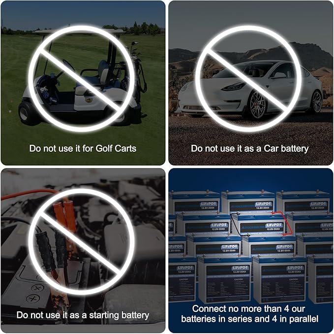 - β Autocessking 12V lithium battery is designed for energy storage purpose only. We do not recommend using it as a starting battery for cars or golf carts.